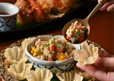 A refined journey of contemporary Thai flavors, set within a timeless riverside mansion along the Chao Phraya River. Each course showcases premium Thai ingredients sourced from across the country, elevated through refined techniques such as smoking to reveal deeper aromas and layered flavors.